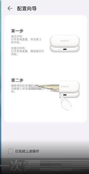注:我们配置耳机时第一次需要打开充电盒盖并按2秒开机,确保耳机在充电盒内,长按功能键2秒至指示灯闪烁,然后确保蓝牙设备连接电源,在手机附近即可扫描到。