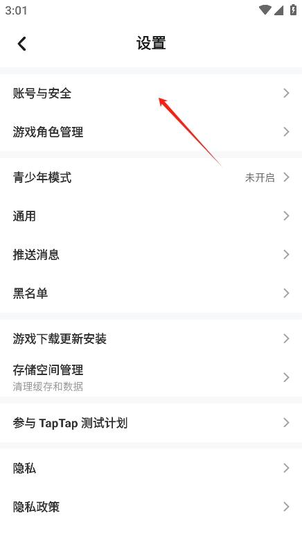 3、选择账号与安全;