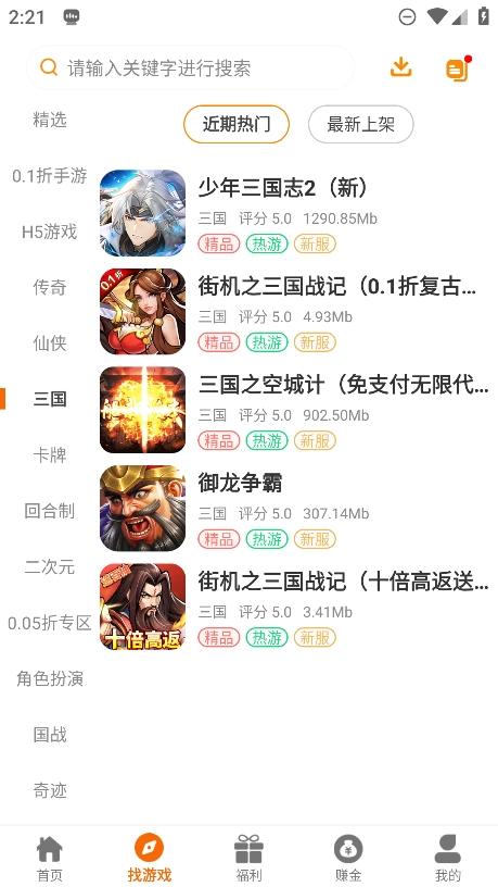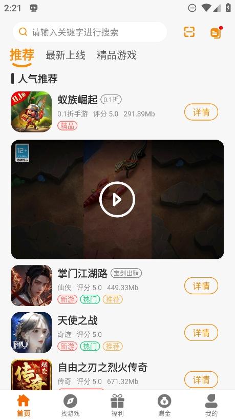 1、进入首页,你可以发现很多的推荐游戏内容,也可以通过关键词进行游戏搜索;