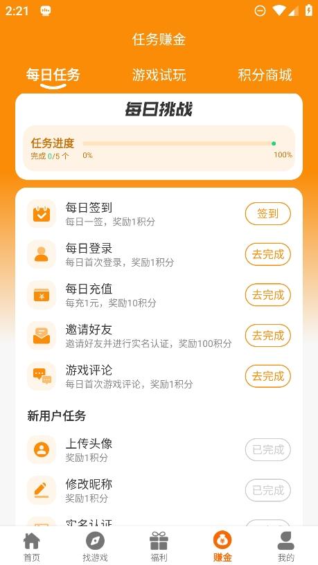 4、玩家们还可以轻松赚金,提供各类每日任务、游戏试玩等可以尝试。