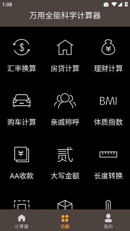 2、在功能中你可以发现更多的功能模块,有汇率划算、房贷计算、理财计算、亲戚称唿等;