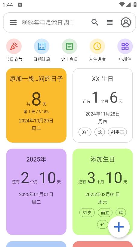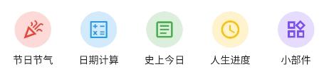 3、软件还提供了节日节气、日期计算、史上今日、人生进度等工具;