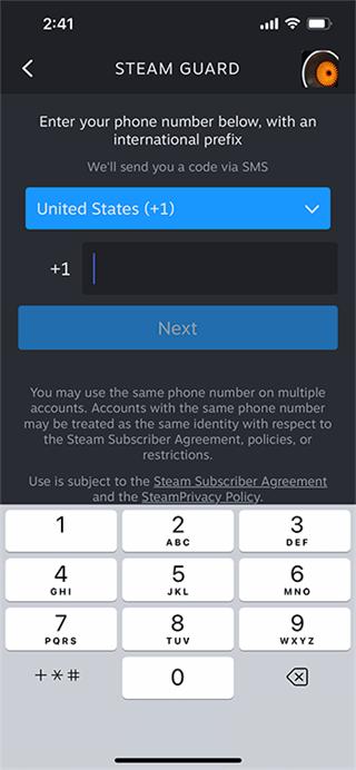 接下来,您需要输入一个电话号码。 我们将向该号码发送一条确认短信。 如果您以后遇到不能访问您的 Steam 帐户的情况,您可以要求 Steam 向该号码发送短信,便可迅速恢复对您的帐户的访问。