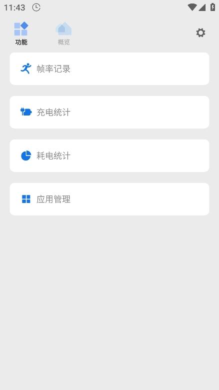 2、可以发现有帧率记录、充电统计、耗电统计、应用管理的功能提供;