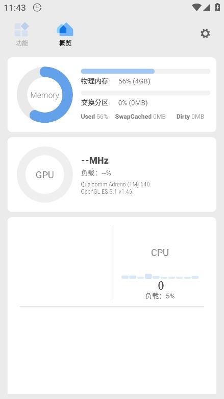 3、能够对于设备详情进行概览,了解cpu、gpu、内存等硬件的使用详情;