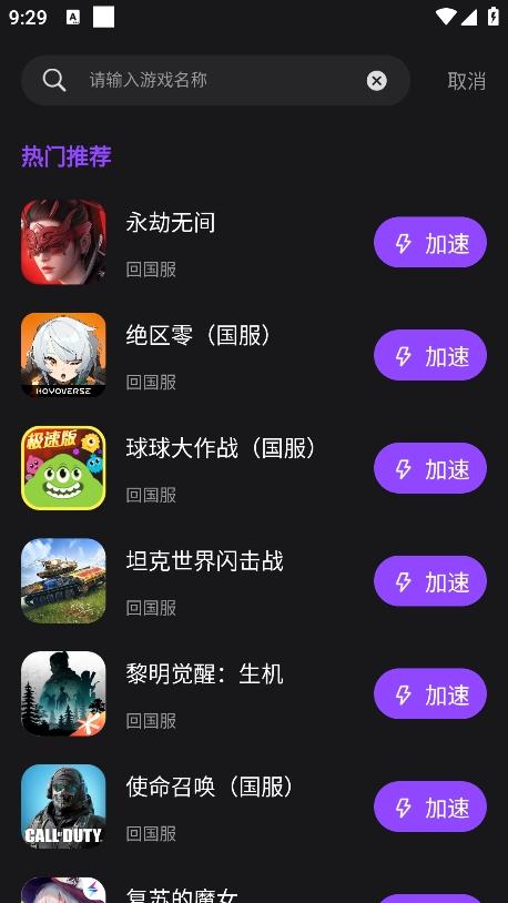 3、我们也可以直接进行游戏搜索,找到兴趣的游戏开展加速。