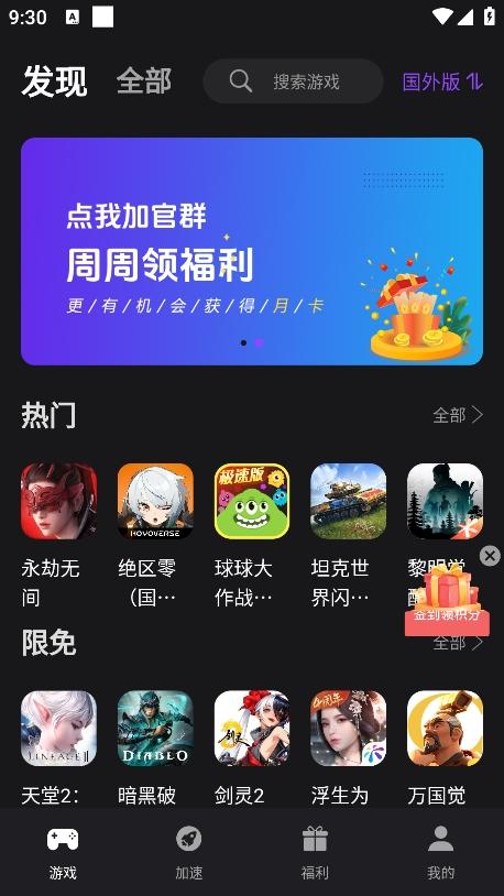 2、有限时免费的游戏加速服务,玩家们可以得到畅快的加速服务,更好开展游戏的;