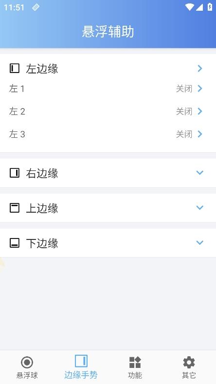 3、支持边缘手势的设定,通过边缘的滑动出发功能;