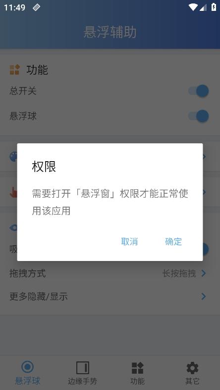 2、通过悬浮球的功能,可以让大家实现单手的设备操作方式,得到很多的便利体验;