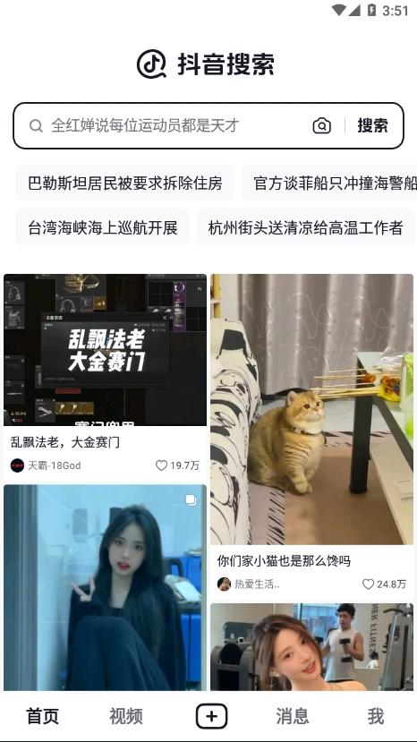 抖音搜索是一个全新构建的内容搜索引擎。用户可以通过这款软件搜索一切你想知道、想学、想吃、想玩的东西,它能给你带来准确的信息。搜索结果的内容可以轻松满足用户的搜索需求。如果需要,请下载并使用它。