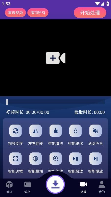 3、提供了视频编辑功能,支持视频倒序、翻转、锐化、消除声音、模煳、快放慢放等。