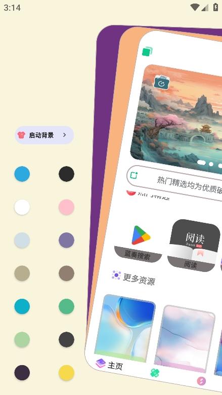 4、内置了众多的主题颜色可以设定,还可以设定个性启动背景。