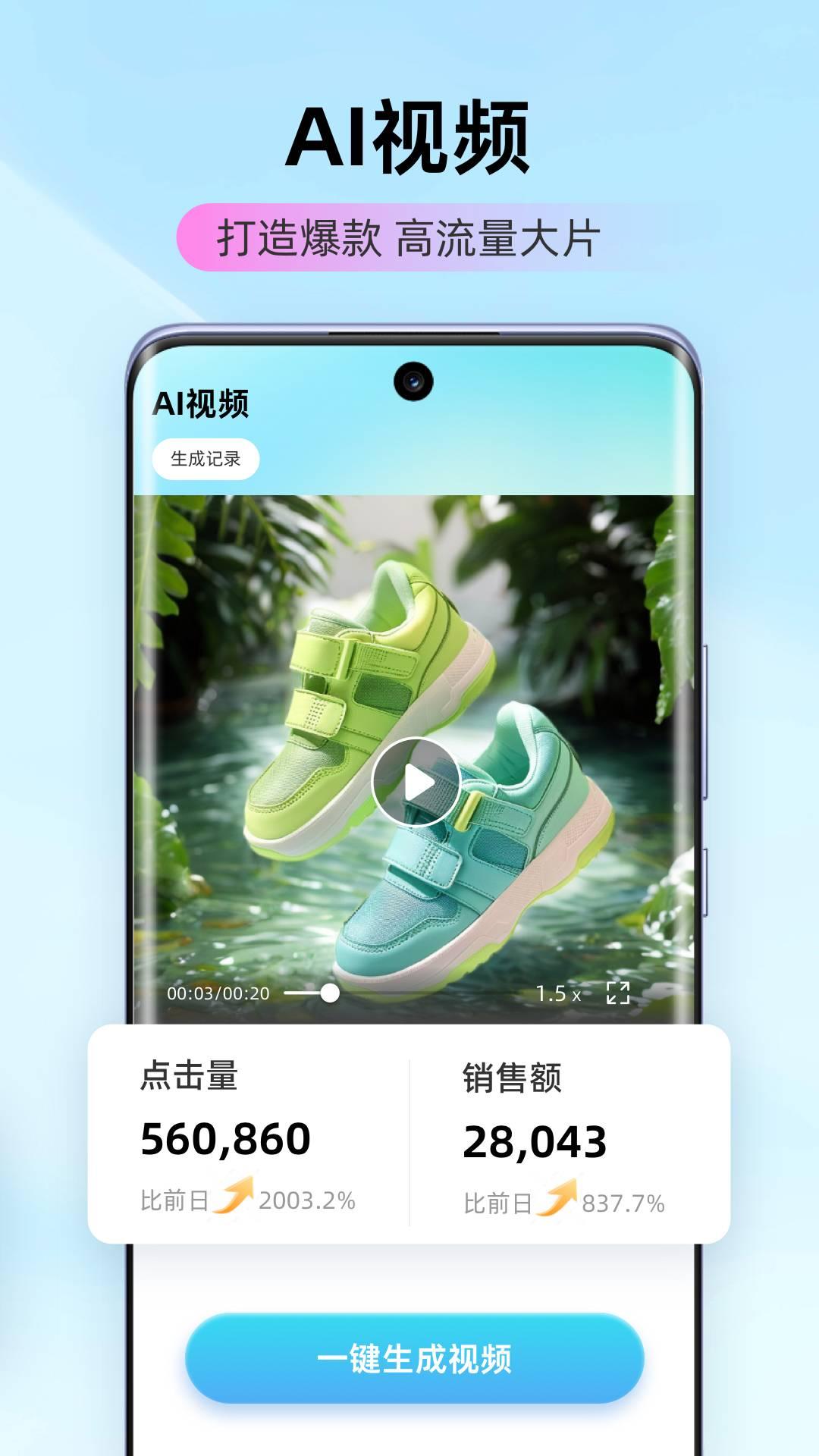 3、各类图片一键生成创意视频,搭载爆款高流量大片。