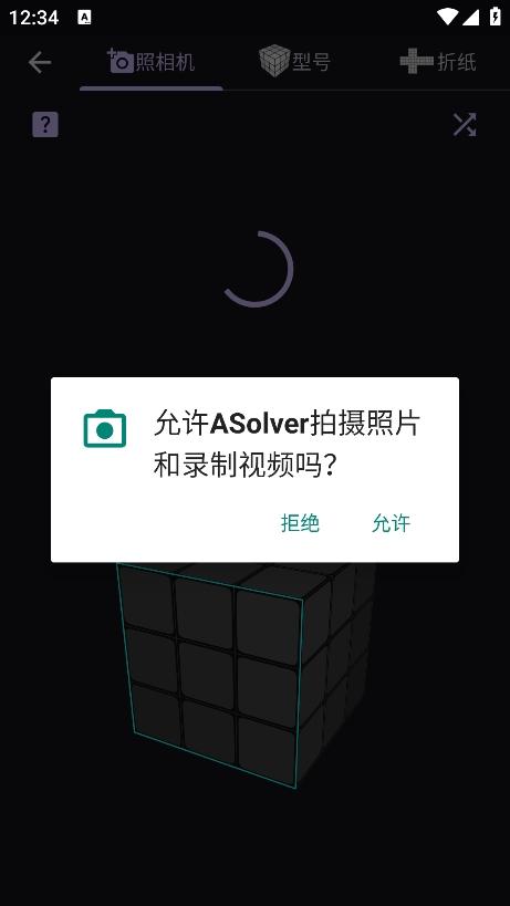 2、选择照相机,对魔方进行拍摄处理,即可完成魔方的识别;