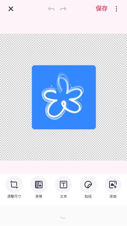 3、对图像内容进行尺寸调整、背景调整、文本、贴纸等内容添加,然后点击保存即可。