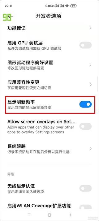 4、然后开启显示刷新频率即可。