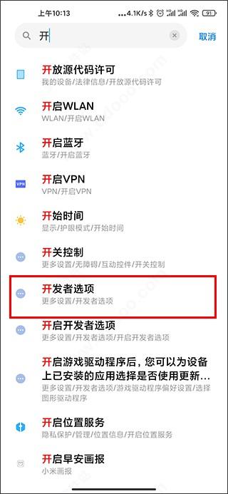 3、接着到设置中找到开发者选项;