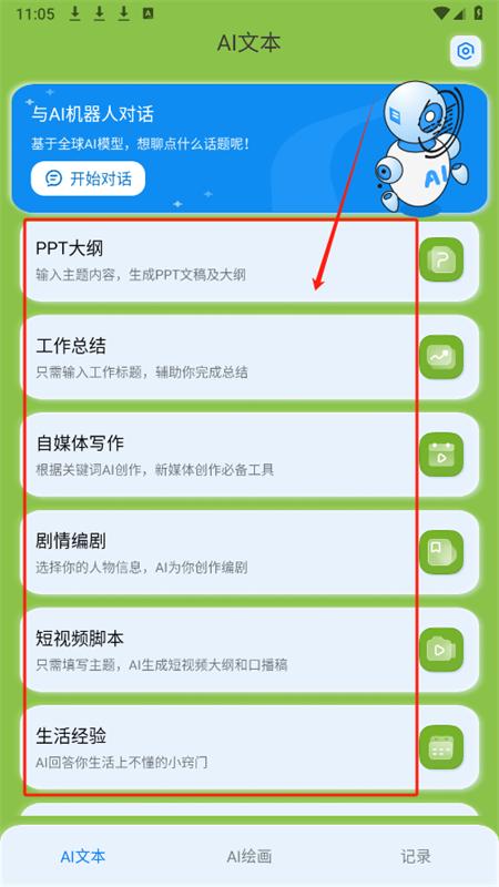2、进入主页后可以看到各种AI文本创作功能;