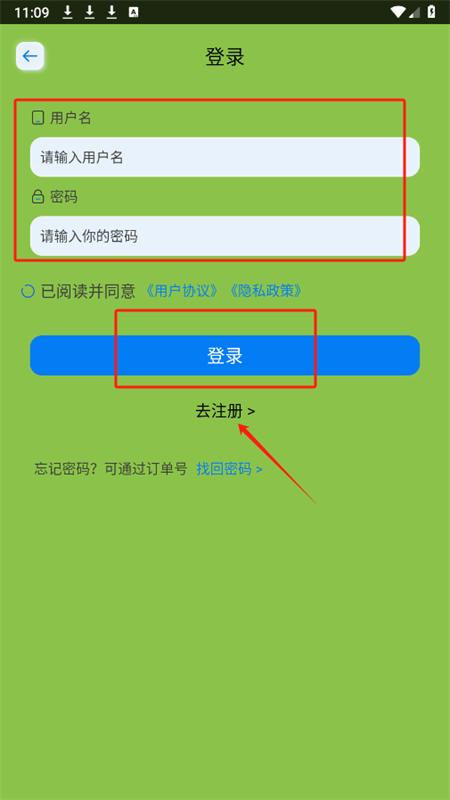 2、输入用户名和密码可以快速注册,没有账号的点击去注册;