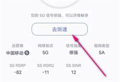 3、当页面里出现信号强度的时候,点击信号下的“去测速”按钮,软件就会开始检测了,此时需要等待一段时间。
