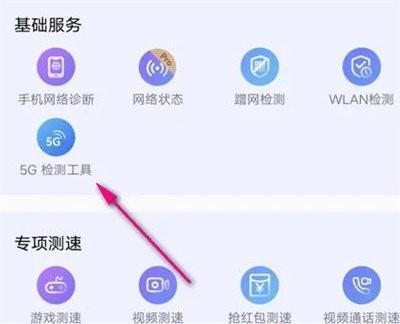 1、打开软件,点击工具,然后在基础服务的下方点击“5G检测工具”。