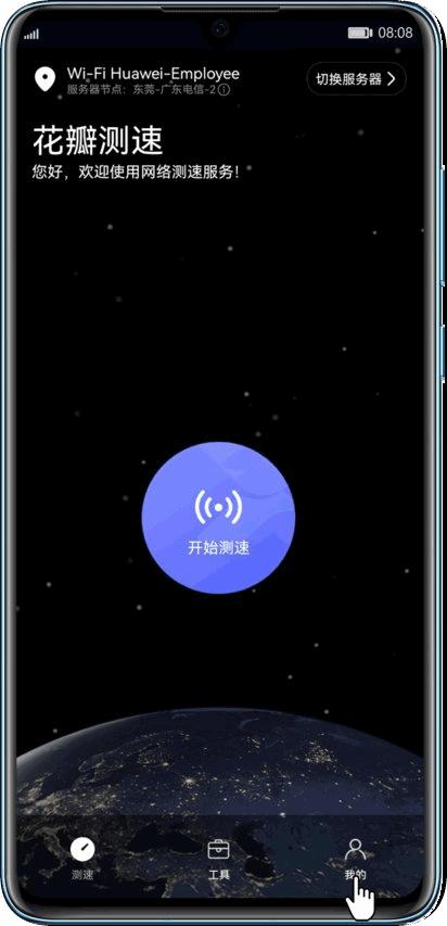 打开花瓣测速后,授予相关应用权限并且连接网络;