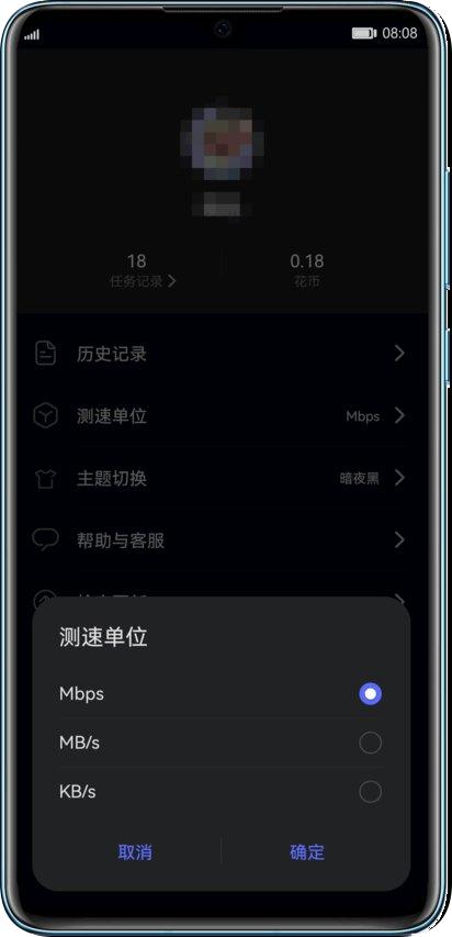 花瓣测速默认测速单位为Mbps,您可根据个人需要切换测速单位,如家庭常用网络带宽为Mbps,建议切换到Mbps后进行测速。
