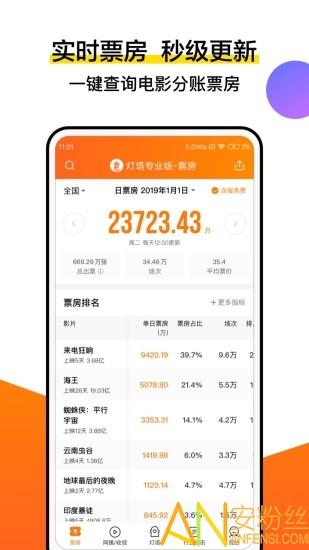 灯塔专业版手机版是一款票价数据查询软件,为你提供海量的影视信息,热门电影排行实时数据更新,网络收视还是综艺看点,实况数据全部显示,直观的让你全面了解数据情况,喜欢的小伙伴就来腾云网安卓网下载吧!