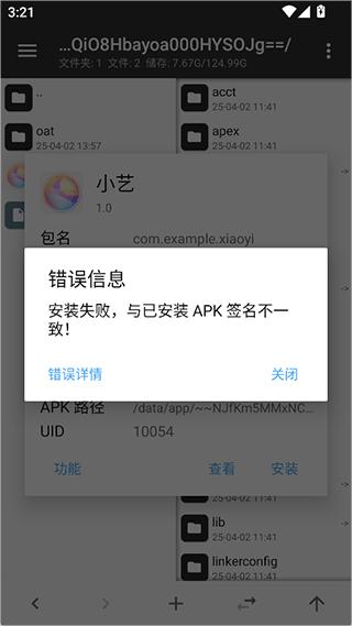 然后显示安装失败,原因就是刚才乱签名导致的,吃了没文化的亏,但是上述就是mt管理器反编译apk的整个流程,只要你懂代码,懂安卓安装包签名规则那就一切简单,不懂的话只能自己上网搜了