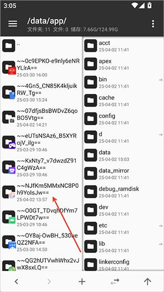 接着输入/data/app/相对地址,将目录跳转至安装包位置