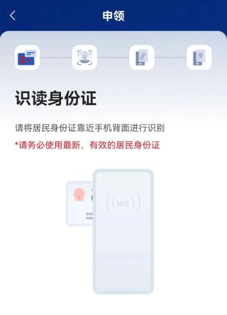 3、会要求识读证件类型,就是将你的证件放置在手机背面NFC感应区即可自动读取。这个步骤需要手机支持NFC功能,如果你的手机不支持NFC功能。
