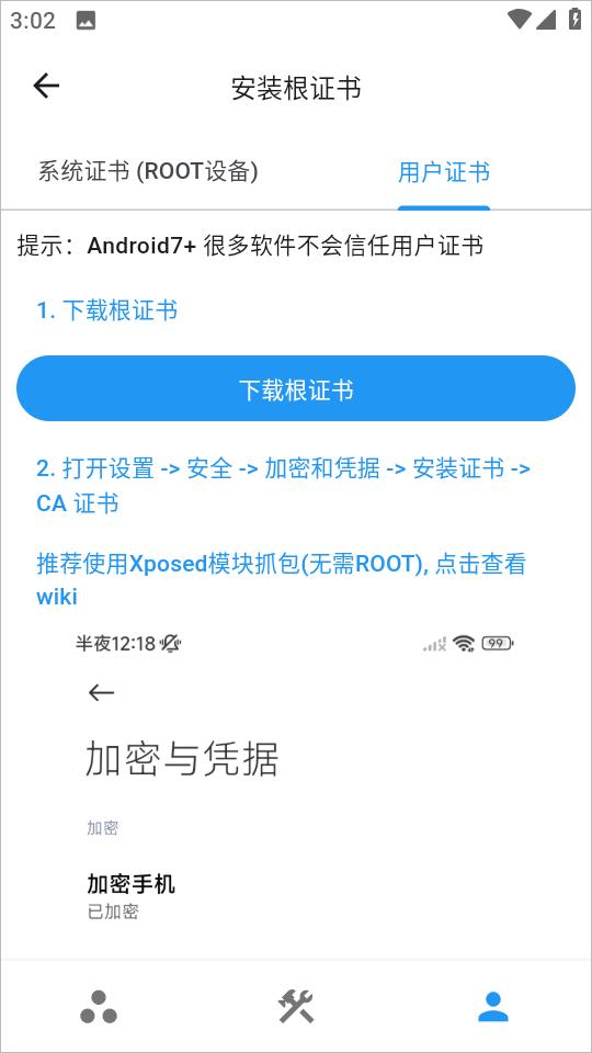 用户正式这里就是根正式页面点击下载根证书就可安装。