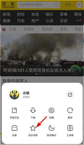 1、先找到自己想设置书签的网页,然后点击右下角横杠按钮,并登录自己的账号;