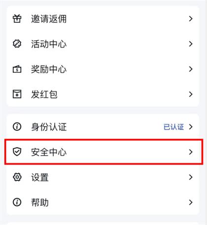 1、首先打开指定app的个人中心,点击下方的“安全中心”。