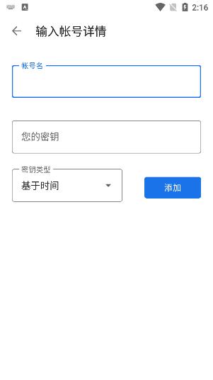 ①首先用户可以手动将密钥输入至谷歌身份验证器当中完成添加。