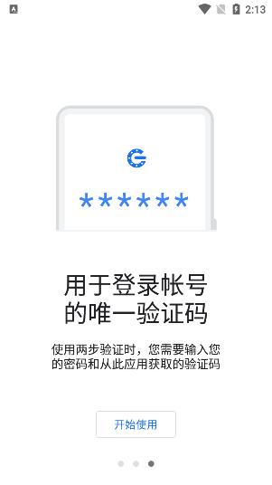 1、打开谷歌身份验证器app安卓手机最新版后点击【开始使用】。