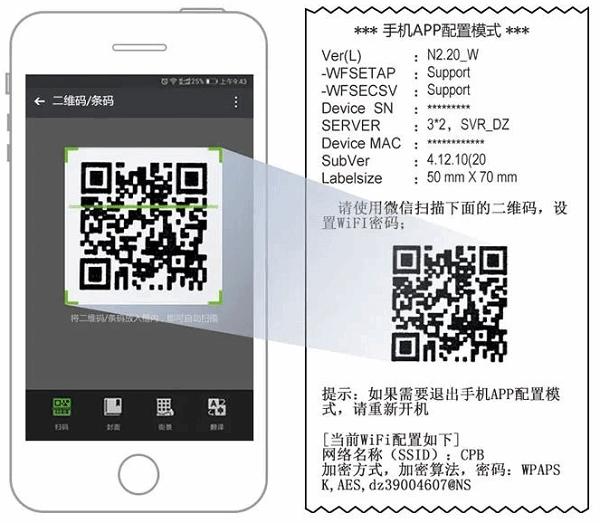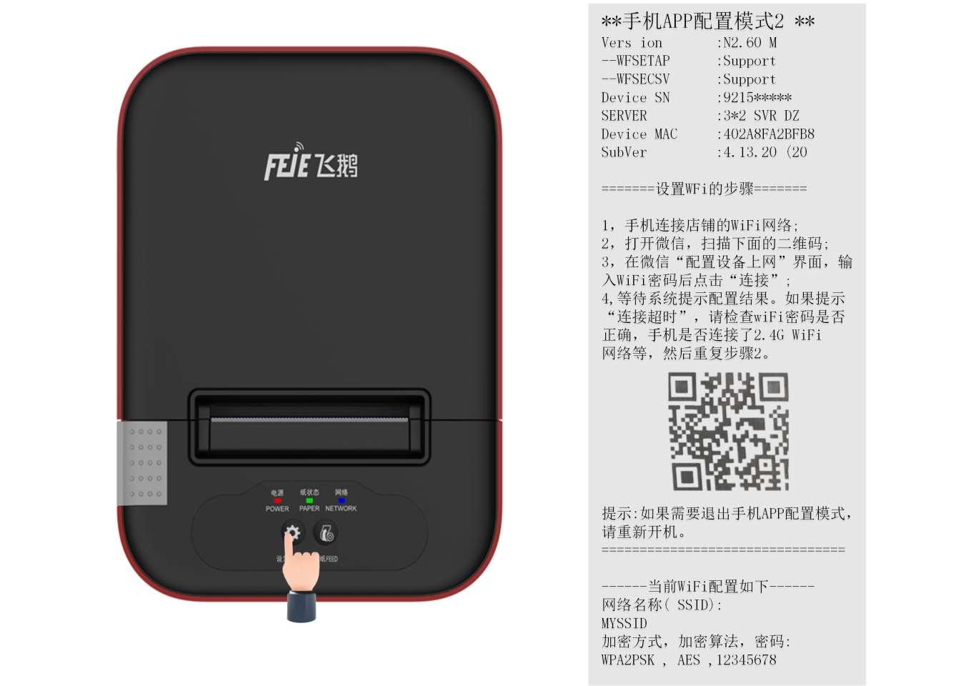 3、再次按一下设置按键,将打印出标题为“手机APP配置模式2”字样的含二维码小票;