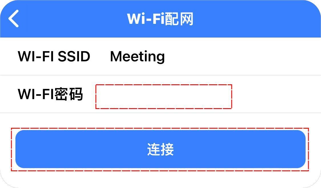 6、在APP“Wi-Fi配网”界面,输入WiFi密码后点击“连接”个别手机有报错提示,需多点几次“连接”;