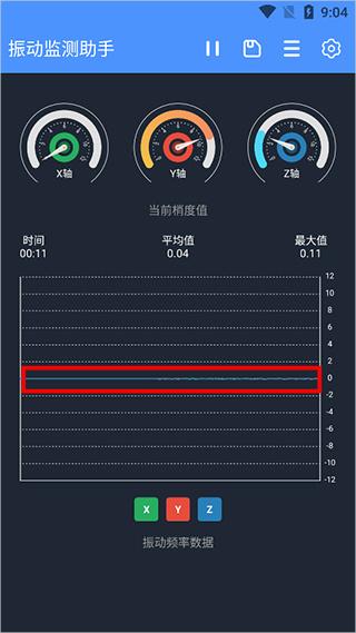 2、接着用户就可以看到x\y\z不同方向的震动数据线