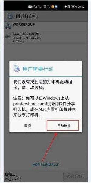 如果你是没有找到打印机驱动程序,就点击“手动选择”;