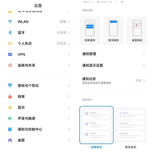 我们对照处理即可,后面我将以我使用的小米MIUI系统为例进行说明,手机的通知样式需要改成原生样式
