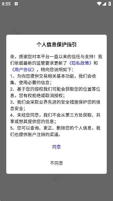 首次进入时,请阅读并勾选《用户协议和隐私政策》;
