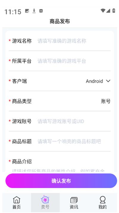 5、还可以一键填写好游戏名称之后,发布你需要的售卖的账号。