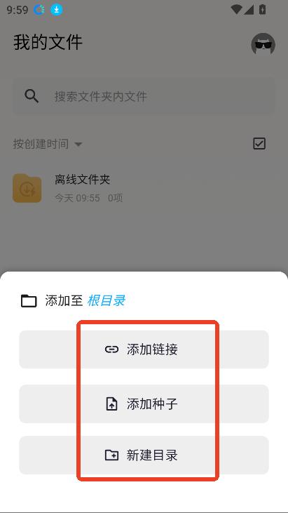 在这里可以选择添加链接,添加种子或者新建目录等选项。