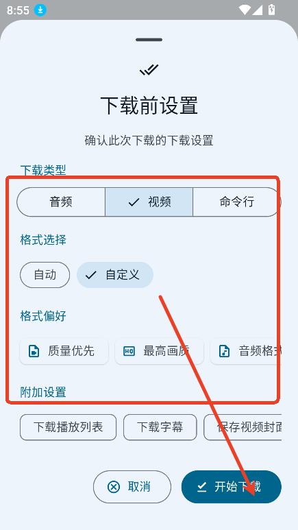 3、选择下载类型:根据需求选择相应的下载类型,然后点击“开始下载”按钮。
