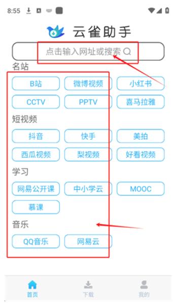 3、在搜索框输入网址或直接从下方平台入口进入所需资源页面。