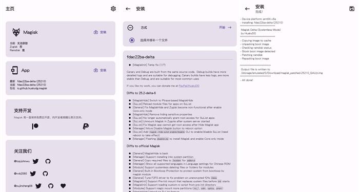 通过实测,高通处理器的机型,直接切换magisk_Delta德尔塔会直接成功,并且不会出现什么问题(排除magisk模块导致的问题),天玑MTK芯片已经刷入了其他版本的magisk直接切换德尔塔面具,很大可能会直接失败,需要大家彻底去除root后,重新使用magiskDelta德尔塔激活root权限才能成功。