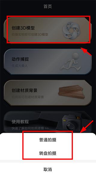 1、点击首页[创建3D模型],选择拍摄方式