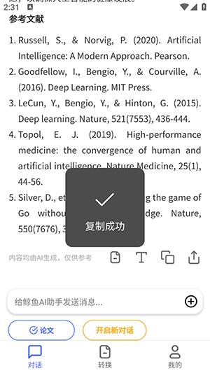 2、操作简单方便:界面简洁直观,易于上手,用户可以通过文字或语音与鲸鱼AI助手进行交互,无需复杂的操作流程。同时,鲸鱼AI助手还支持多平台使用,用户可以在不同的设备上随时随地使用。