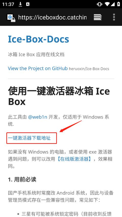 5、点击后会跳转至浏览器,将跳转后的链接复制到电脑上,打开后点击一键激活器下载地址,将冰箱激活器下载到电脑上